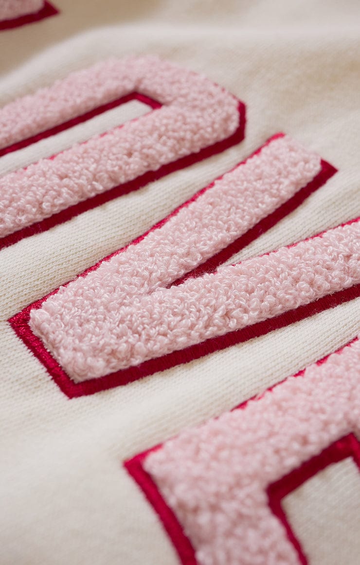Designed with an oversized fit and soft cotton-blend fleece, this crewneck brings all the cozy vibes. The boucle “Lover” varsity lettering adds a romantic touch, making it perfect for lounging or layering on cool days.