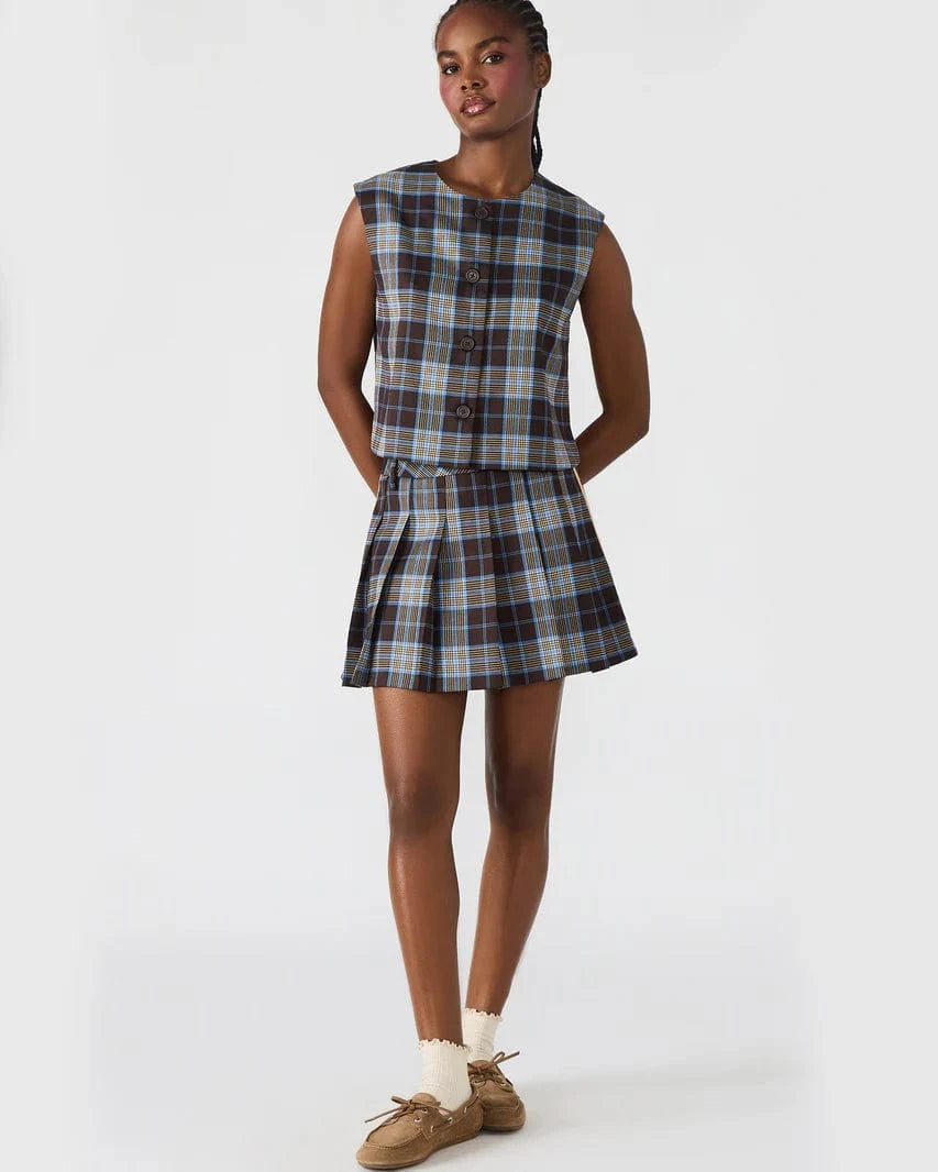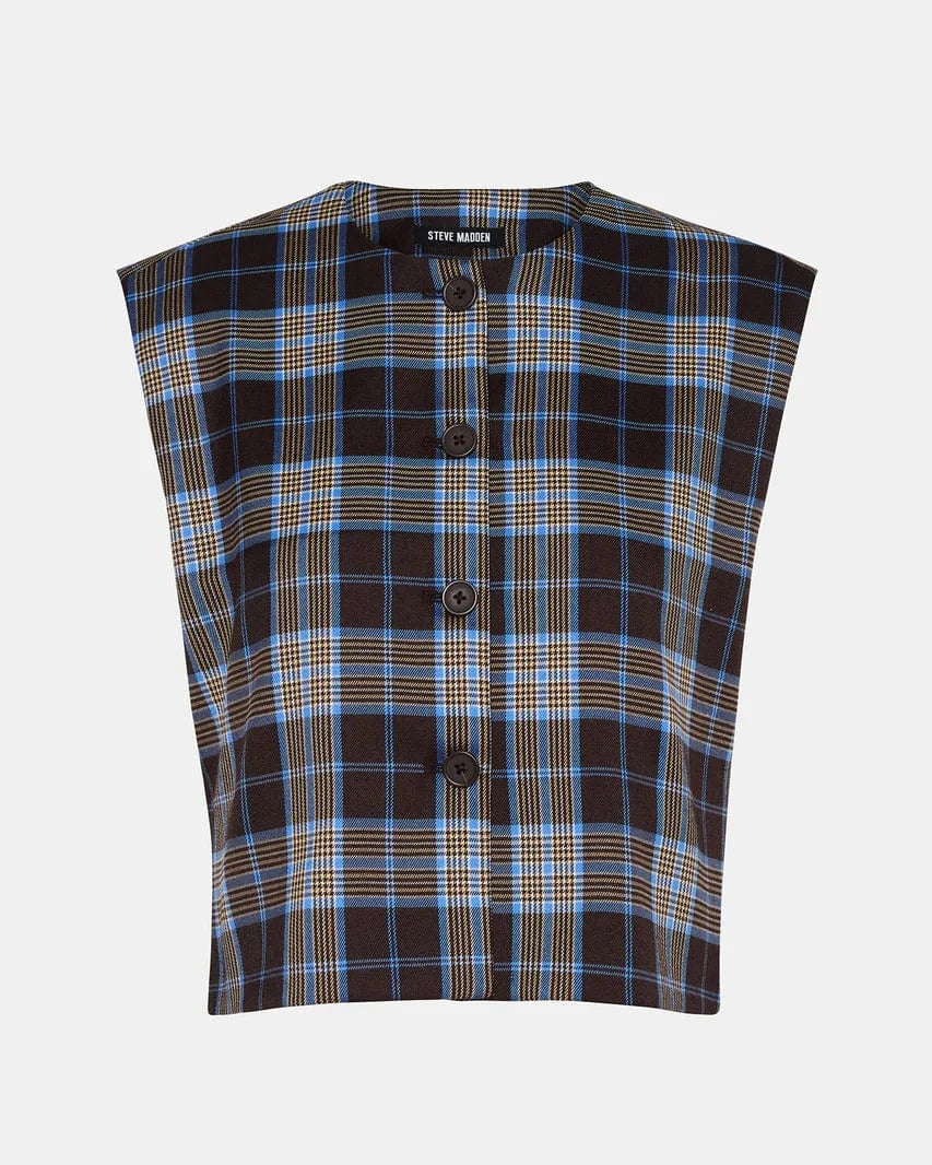 The ALESSA top features a classic button-up design crafted with precision for a polished look. Its coordinating plaid pattern makes it an ideal piece for creating a cohesive matching set, blending timeless style with versatile wearability. Perfect for layering or wearing alone, this top offers both comfort and sophistication for a refined wardrobe staple.