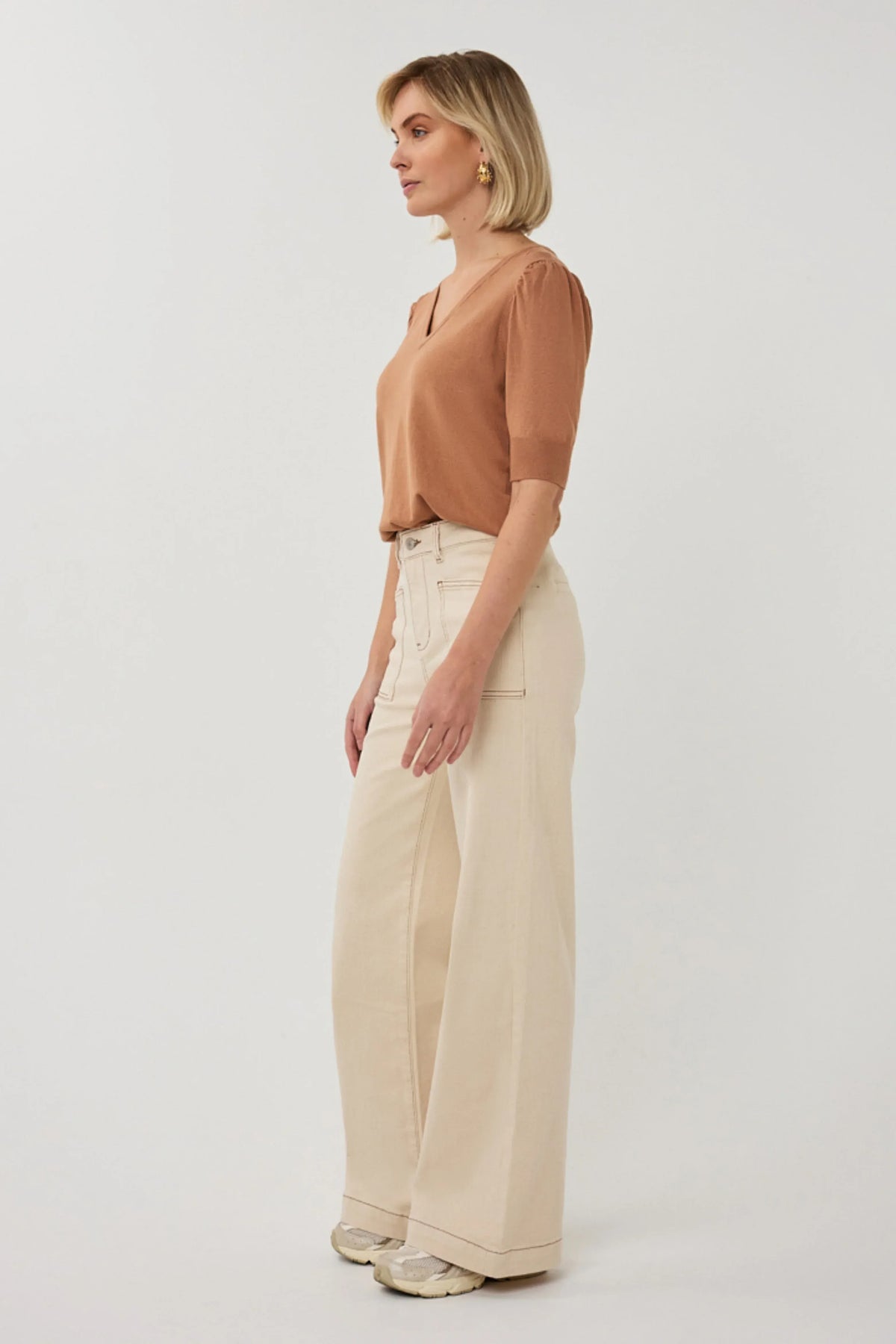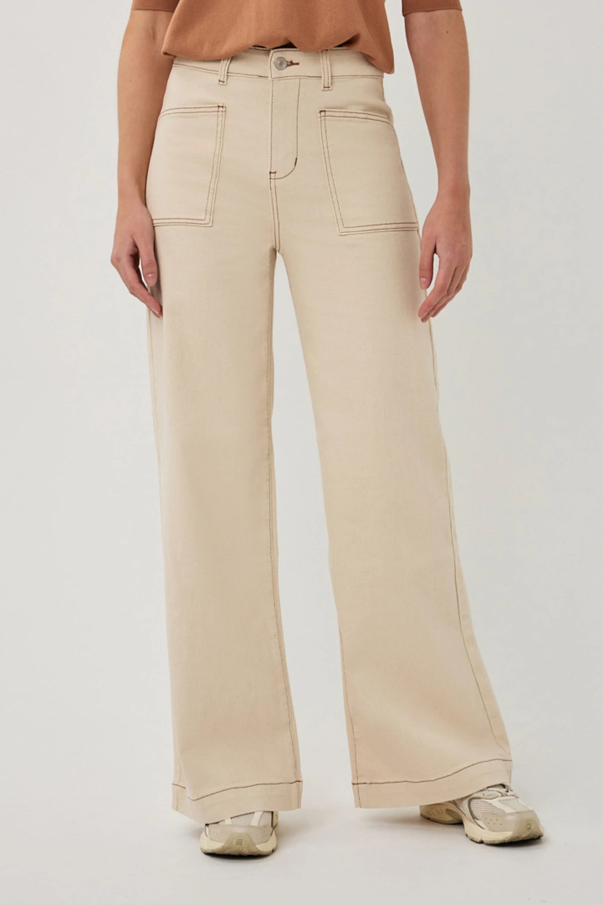 The Esqualo Twill Natural Trousers are a modern wide-leg style with a high waist and patch front pockets. The sturdy twill drapes smoothly and creates a chic silhouette. Perfect for casual chic and the office.