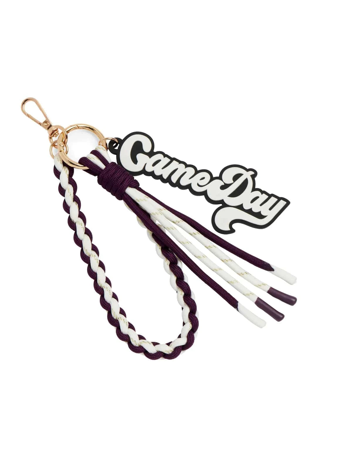Show off your team spirit in style with the Game Day Bag Charm/Key Ring! Featuring braided cords in vibrant game-day colors, a playful "Game Day" tag, and a mix of textured tassels, this charm adds instant personality to your favorite bag. The gold-tone key ring and easy clasp hook make it a breeze to attach to any purse, tote, or backpack. Whether you're tailgating or just out running errands, this accessory is here to cheer you on!