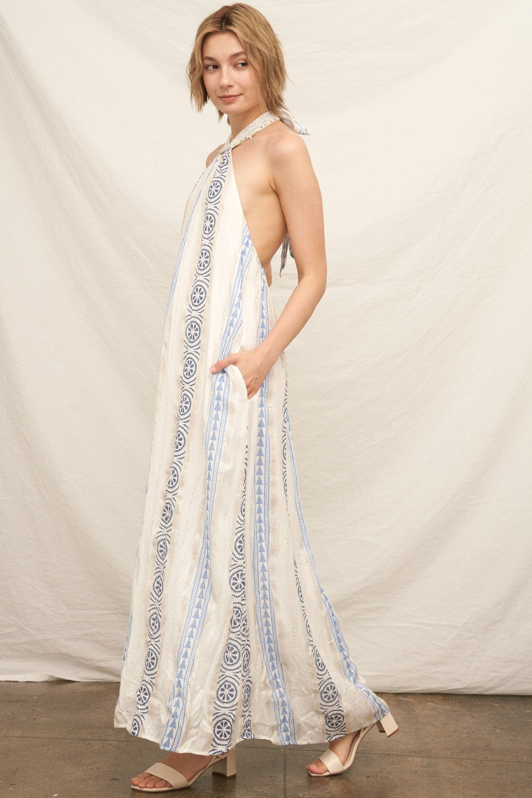 Embroidered Halter Neck Maxi Dress Lurex Detail