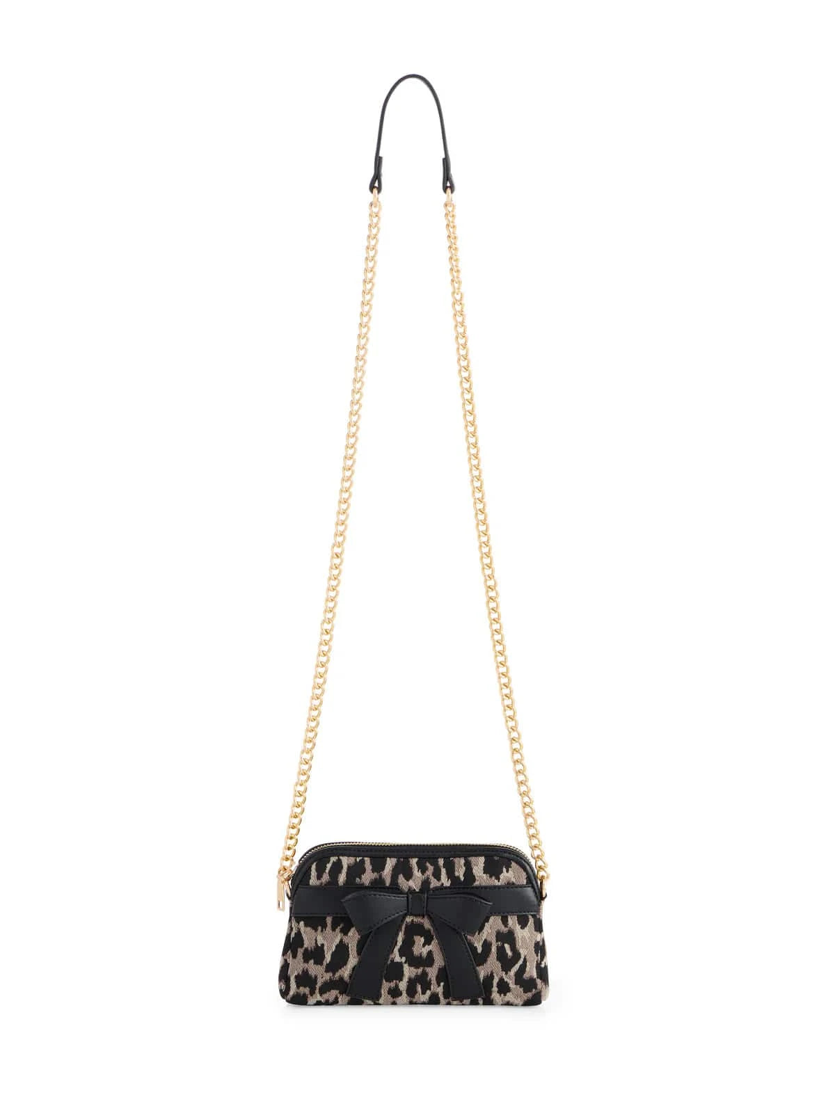 Fierce meets feminine in the Leo Cross-Body. This standout accessory features a bold leopard print with a sleek faux leather bow and gold chain strap for a flirty-meets-edgy vibe. Designed with a top zip closure and an inner slip pocket, it’s perfect for stashing your essentials while turning heads. Whether you’re headed to brunch or date night, this compact cross-body adds just the right dose of wild charm.