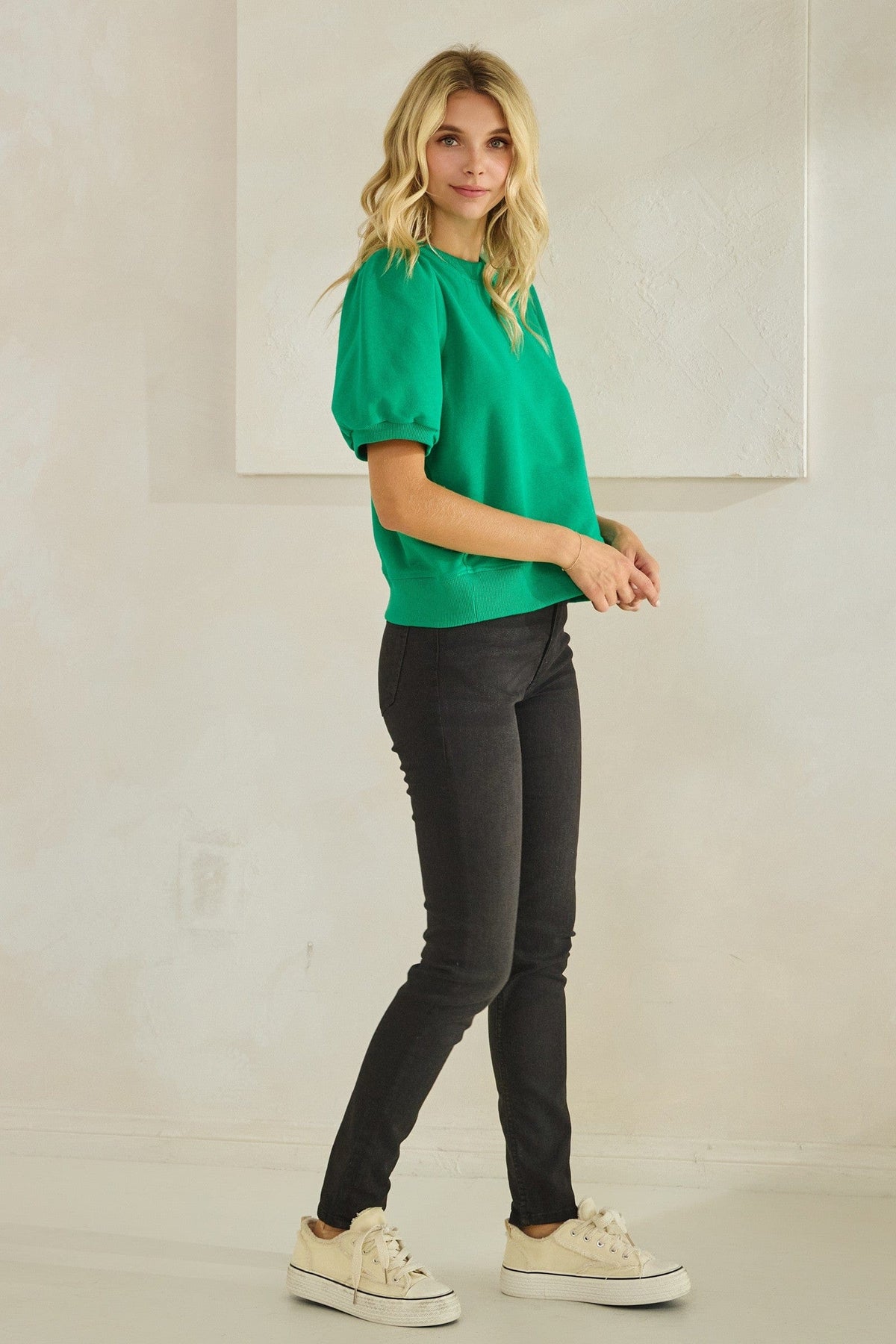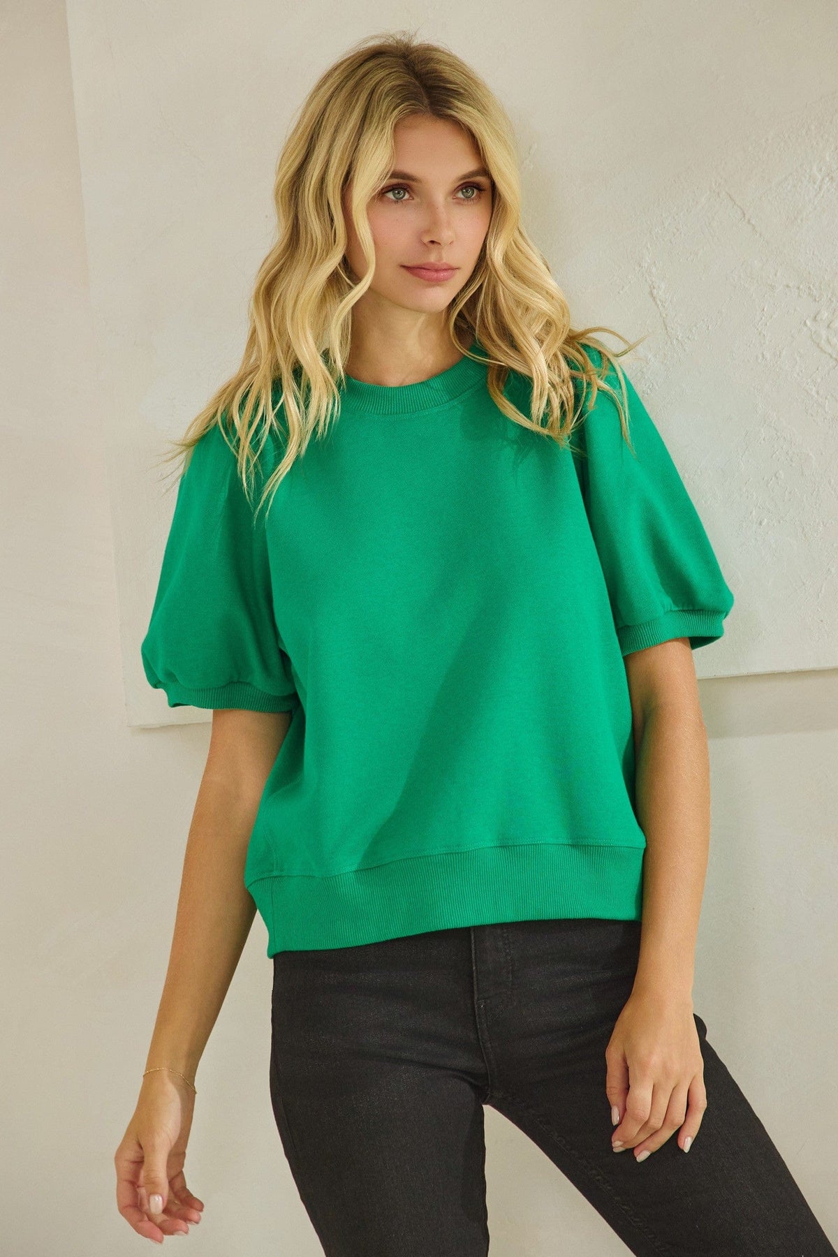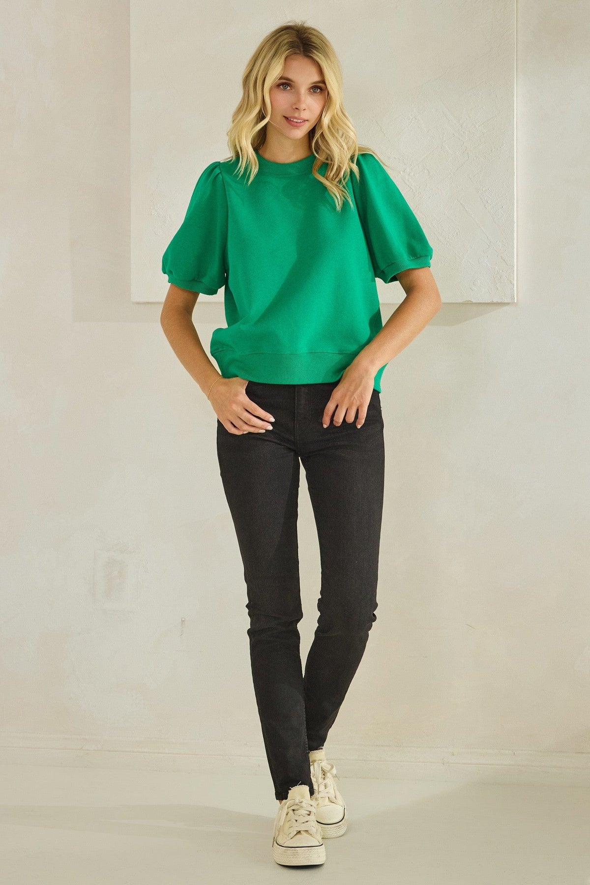 Puff-sleeve Terry Fabrication Sweatshirt Top